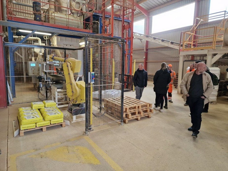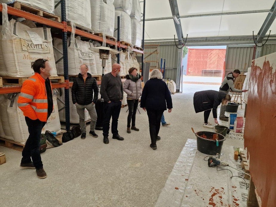 Nous avons découvert le site d'extraction de l'argile et avons visité l'usine dans laquelle les personnes et les machines mélangent et mettent en sacs les ingrédients nécessaires aux mortiers, enduits et badigeons de la gamme proposée par ce fabricant.